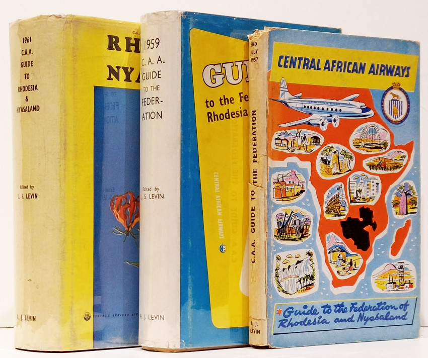 1957: First edition: 264 pages, frontispiece map, black and white and colour photographs, double page colour map of Rhodesia, pictorial paper covered boards, spine si starting to split along the edges, a good copy. Together with supplement to the 1958 edition loosely inserted, a good copy.