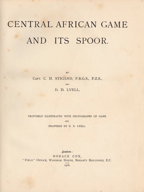 Czech: An annotated Bibliography of African Big Game hunting Books, 1785 to 1950, page 157, ‘A key book for both the novice and experienced hunters. Stigand and Lyell combine their encyclopedic knowledge of African big game to detail where wild game will be found, its habits and how to make vital shots on different species. Also of great interest are the life size hoof and paw prints, as well as illustrations of droppings. There is also an excellent chapter on rifles based on their own experiences.’