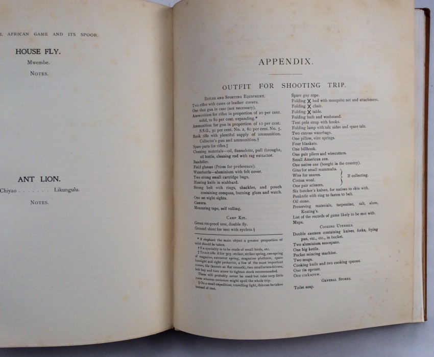First edition, and a better than average copy. ‘A key book for both the novice and experienced hunters. Stigand and Lyell combine their encyclopedic knowledge of African big game to detail where wild game will be found, its habits and how to make vital shots on different species. Also of great interest are the life size hoof and paw prints, as well as illustrations of droppings. There is also an excellent chapter on rifles based on their own experiences.’ (Czech).