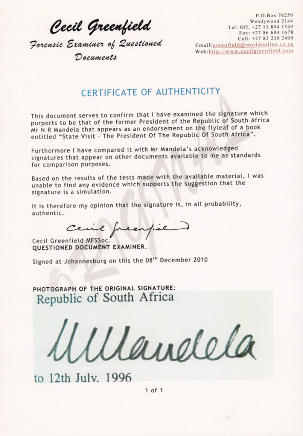 Signed by Nelson Mandela on the title page. Accompanied by a certificate of authenticity, which is loosely inserted.
