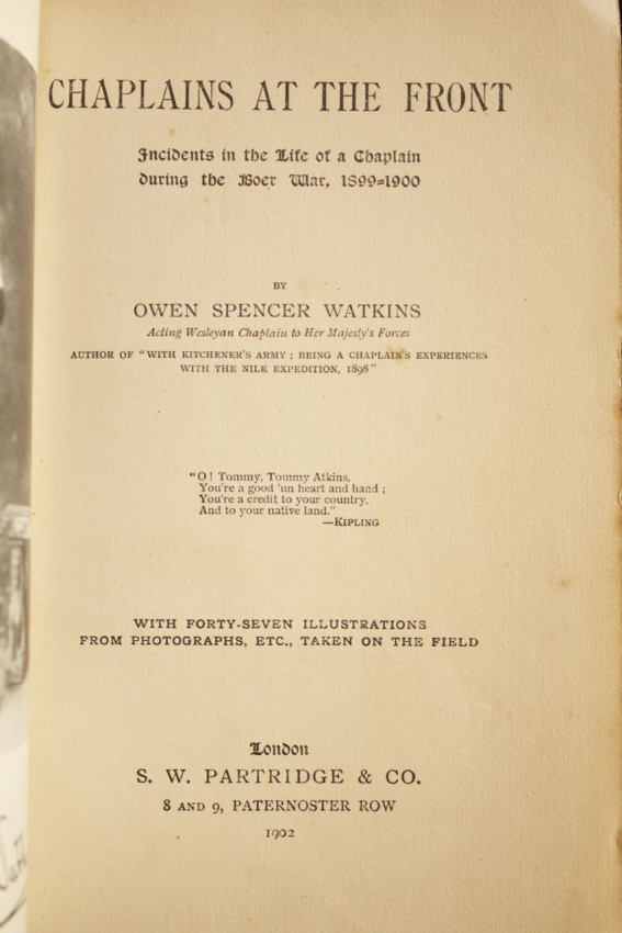 1.) Chaplains at the Front. Incidents in the Life of a Chaplain during the Boer War, 1899-1900. By Owen Spencer Watkins, acting Wesleyan Chaplain to Her Majesty's Forces...with forty-seven illustrations from photographs taken in the field.