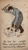 Dwarf series No. 21; Cover title: A naughty doggie./ Dean's Rag Books./ A dog steals a bone from the butcher and is ”severely whipped” for the theft. Pictures by N. Westrup.