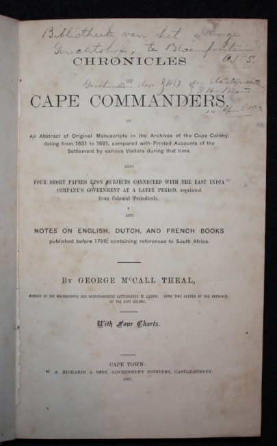 Bound by Saul Solomon & Co., Cape Town. Wear to extremities and heavy wear to rear board, including small loss at the top edge and worn through the marbled paper at the board center.