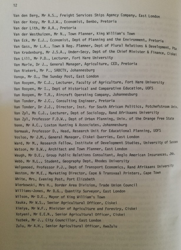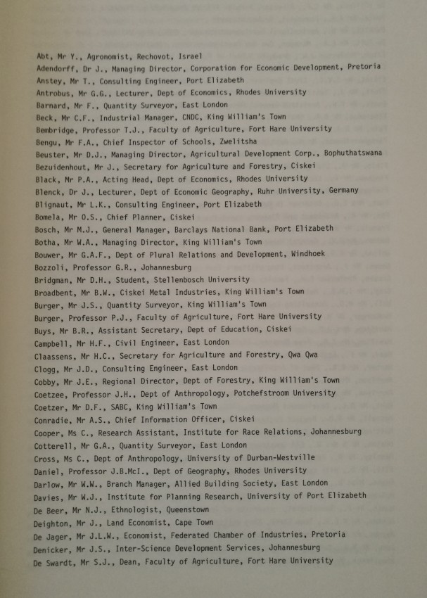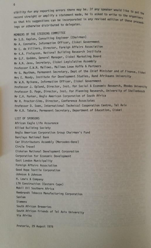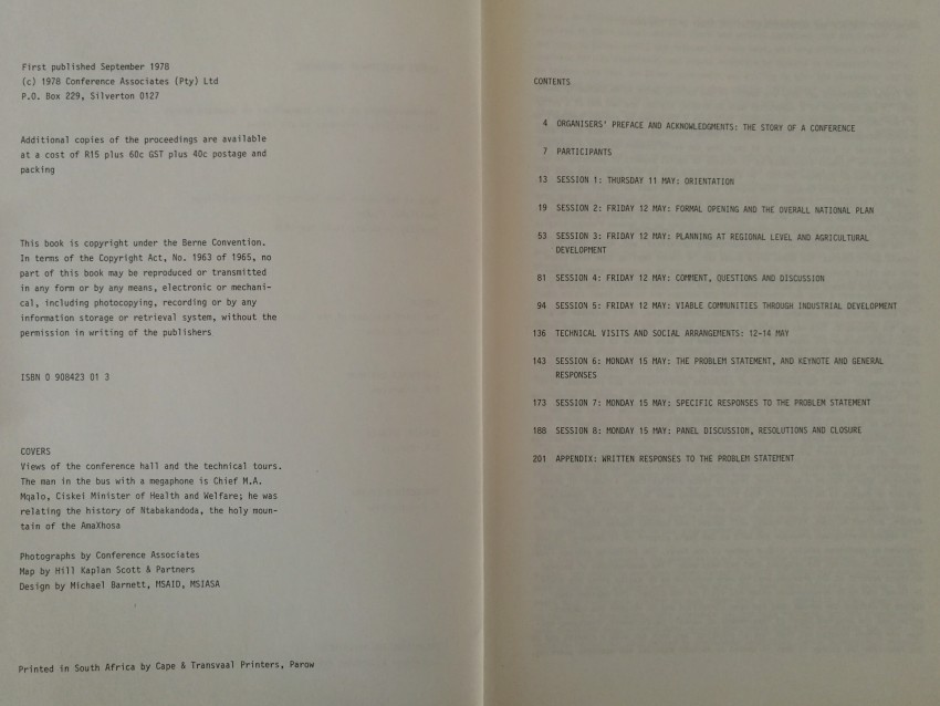 Laminated limp covers illustrated with 9 colour photographs on both faces and with black lettering and a map, which extends over both faces, black printing to the spine, cover versos plain, drawn on to 208 pp of unillustrated b/w text in thread-sewn sections, with the text including lists of steering committee member, sponsors and participants, as well as maps, figures and tables and, on p 142, the reproduction of a playbill (delegates were treated to a special performance of Lerner and Loewe's Camelot - the one-hundredth performance of the production by the King Wlliam's Town Amateur Music and Dramatic Society, described as the oldest dramatic society in South Africa).