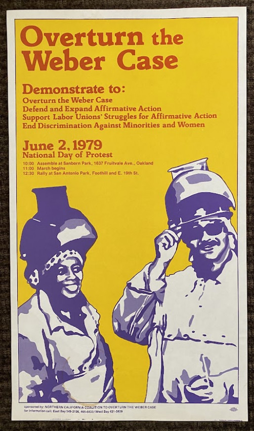 - Overturn the Weber case. Demonstrate to: Overturn the Weber case. Defend and expand affirmative action. Support Labor Unions. End Discrimination against minorities and women. 1979