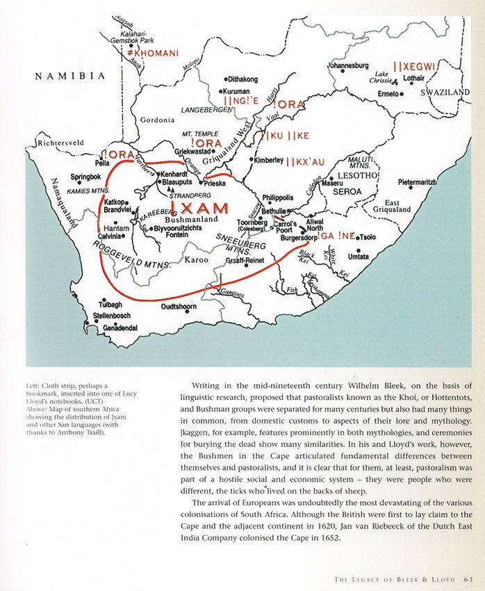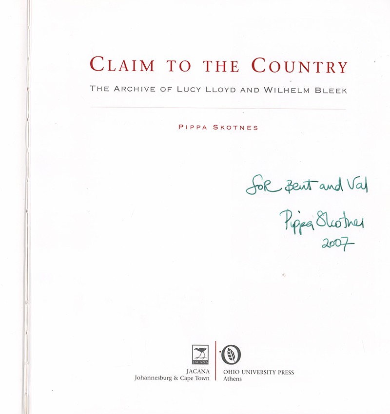 Editor’s note. In Claim to the Country Pippa Skotnes presents, for the first time, all the notebook pages and drawings that comprise the bulk of the Bleek & Lloyd archive. Also included is a searchable annotated index for all the narratives and contributors and several contextualising essays by well-known scholars. More than this, Pippa Skotnes has revealed both the beauty of the archive and the loss that it represents. She celebrates the enormous achievement of Wilhelm Bleek and Lucy Lloyd as well as the lives of the men and women and their children who struggled against unimaginable odds to survive, yet who filled the landscape with the poetry of their ideas and set their stories adrift on the wind. This book shows that more than a record of the memories of a few !xam and !kun individuals and the dispossession of their descendants, the archive is their claim to the country.