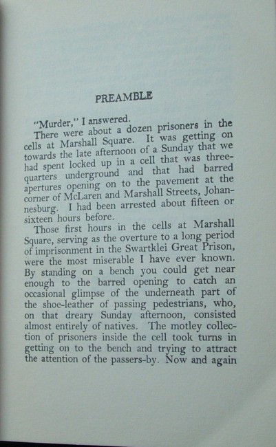 In 1926, the author, who was teaching in the Marico district of the Transvaal visited his parents in Yeoville during the June school holidays. He became involved in a quarrel with his stepbrother, David Russell, and shot and killed him. He was found guilty of murder and sentenced to death . He was 21.