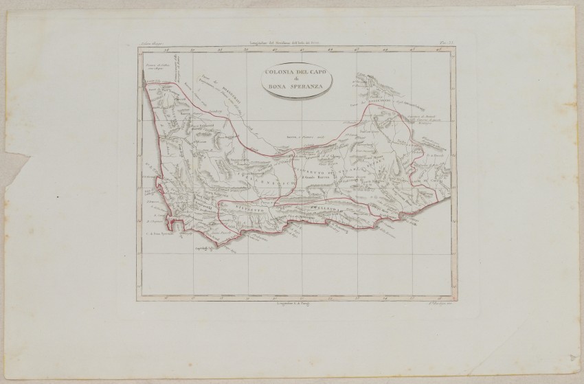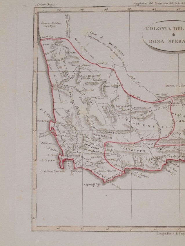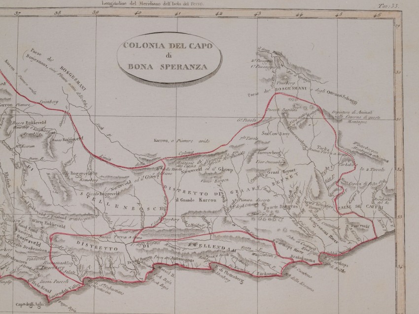 Very beautiful map of Cape of Good Hope, coloured by hand.