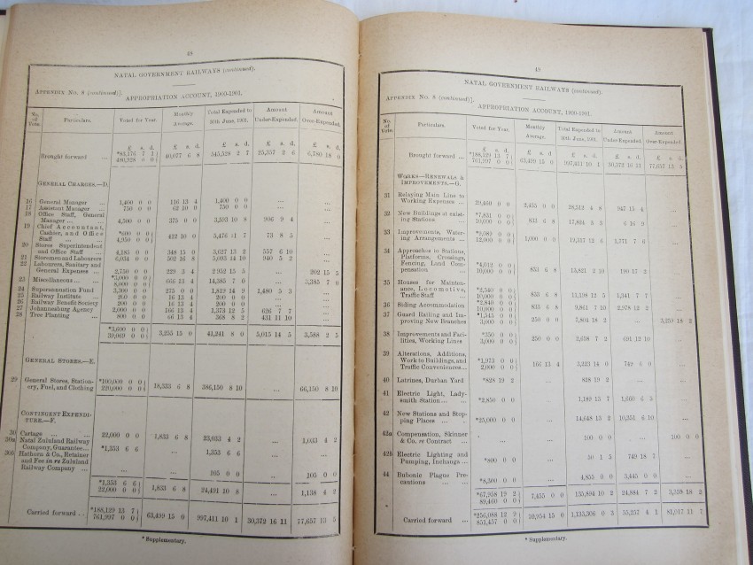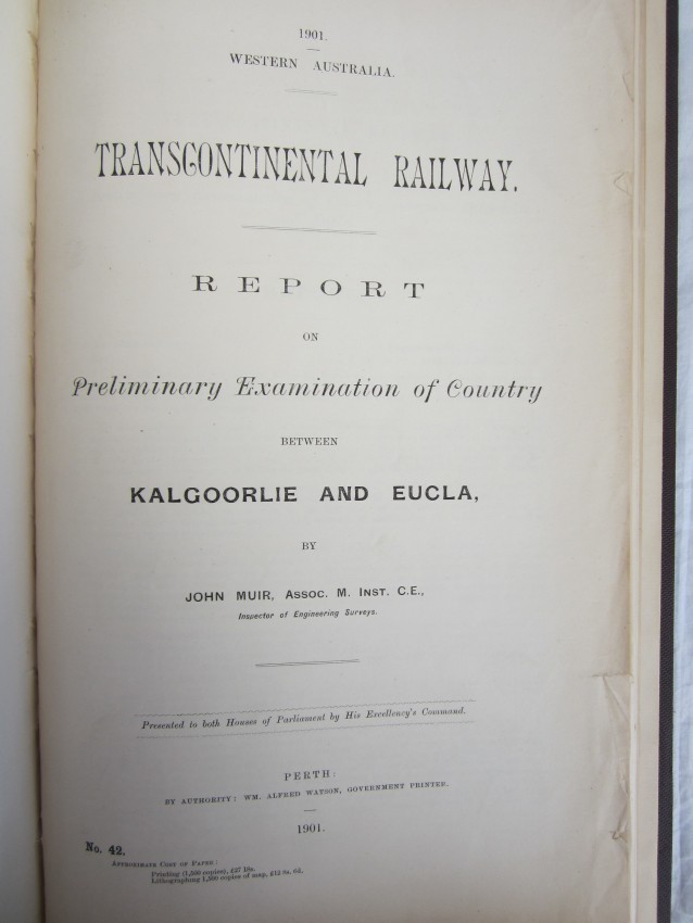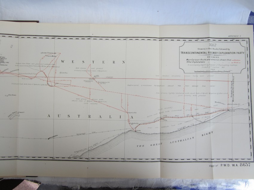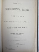 Folio (34x22 cms). The Natal Report has 55 pages plus an Annexure of 12 pages with a drawn plan & 24 b & w photographs of Natal trains, track, stations, etc.; folding charts & a folding coloured map : the official report covering every aspect of running the railway. The Australian Report (covering Kalgoorlie & Eucla) has 14+4 pages, a folding coloured map & 12 b & w photographs.