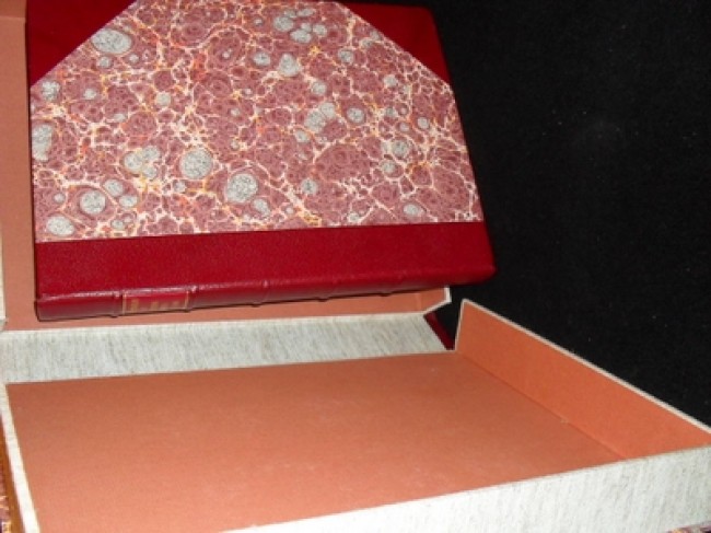 This, Number 6 (the maroon copy), is being offered for sale for the second time. The book itself is unmarked and mint; the solander box is rated only fine as two of the the corners of the solander box are lightly bumped.
