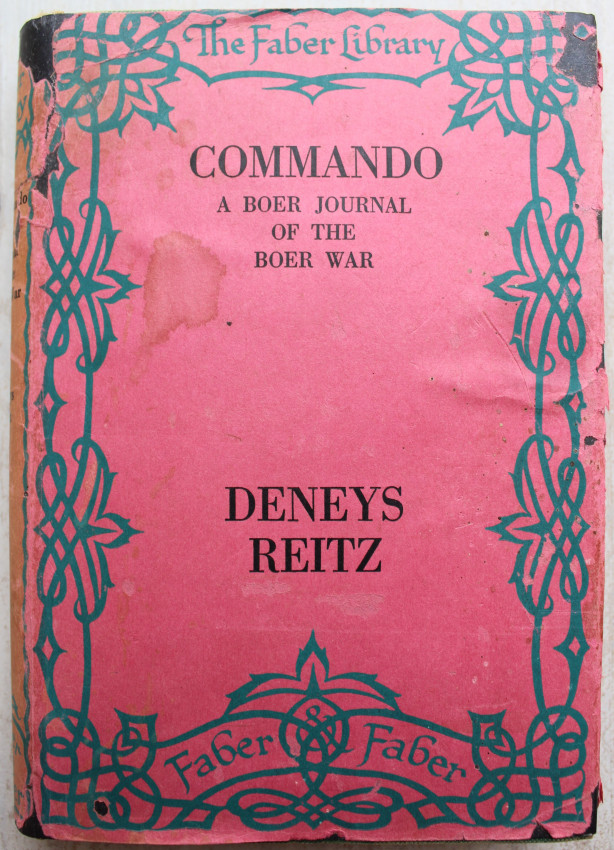 A 1933 print of this very popular Anglo-Boer War journal by Reitz. This copy has been through some hands - The original dust jacket was frail and pasted onto a stronger carton paper. The green cloth spine of the covers have seen some injuries. Furthermore some borer worm have earlier done some damage to the first and last 3 pages - see pictures included.
