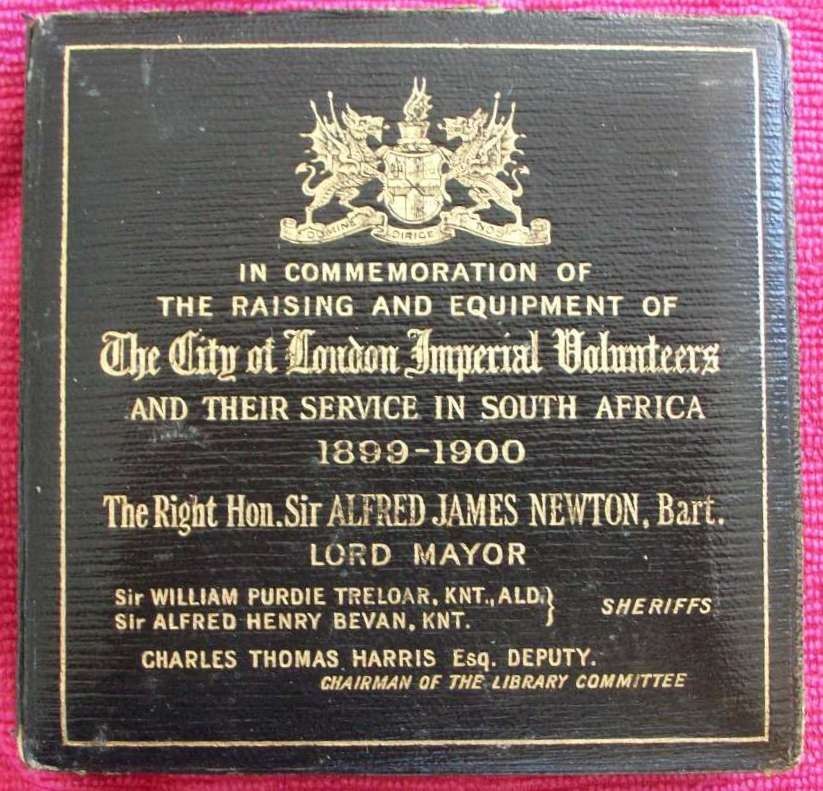 Boxed presentation case - In Commemoration of the raising and equipment of The City of London Imperial Volunteers and their service in South Africa 1899-1900.