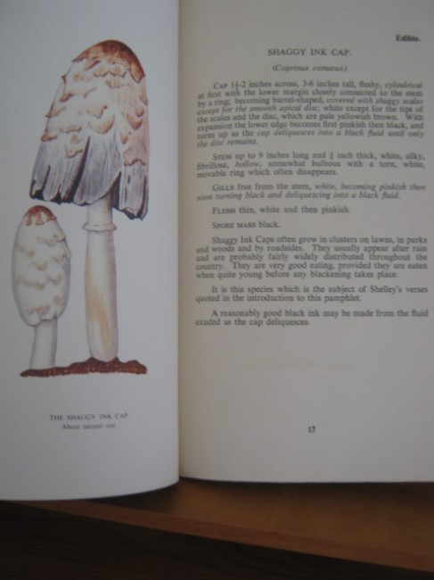 After an introduction (which includes an extract from an 1820 poem by Shelley - “Sensitive Plant”), which notes, among much other information that there is no botanical difference between “mushrooms” and “toadstools”, the bulletin describes 20 of the more common species, with each illustrated by a full-page colour plate. Nine of these are rated as edible, three as borderline and the remainder as inedible or poisonous. The painting of the (edible) Tough Boletus is by the noted botanical artist Cythna Letty.