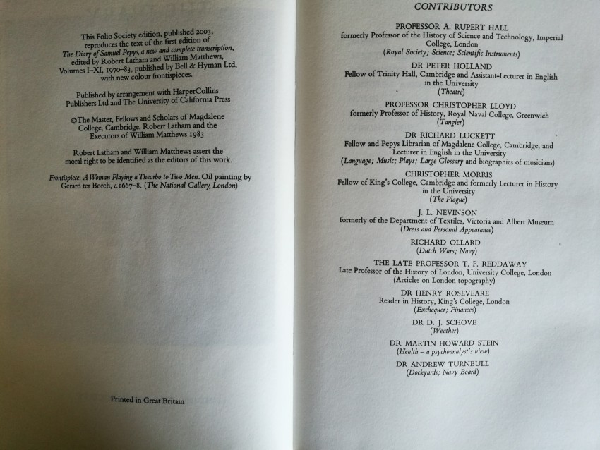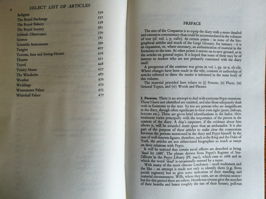 This companion volume (Vol X of the Folio Society edition of Pepys's diary) stands on its own and presents the essence of Pepys without the detailed diary entries and notes. The presentation is alphabetical nearly fifty main articles, contributed by 12 authorities, in their alphabetical positions: