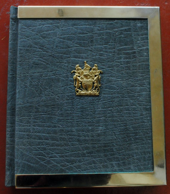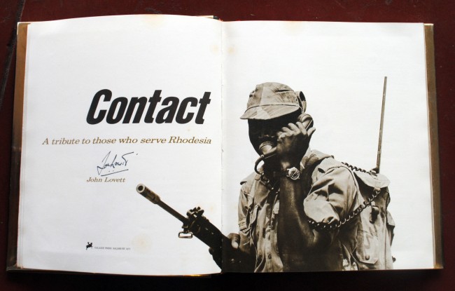 Limited/collectors ed of 115 copies, this is no.29. 240p, illustrated throughout. Bound in grey elephant hide with brass framed edges and emblem on front cover. In cloth slipcase and box, all in very good condition. Signed by the author on title page and there is a presentation page, signed by the Presidents of Rhodesia, including Ian Smith, J Wrathall, Dupont, plus commanders of the army, Lieutenant General Walls, Air Marshal McLaren, Lieutenant Hickman.
