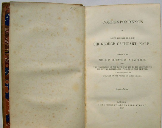 Period full leather binding with gilt titling on the black title label and gilt decorations on the panels between the raised bands and gilt rules on both the upper and lower boards. Marbled paper end papers and the same design on the edges. Book plate of Alexander Lee M'Gregor on the front paste down. There is no half title - pagination of prelims to xiii, text to page 401 collated. All 7 maps/plans are present: 5 of which are fold outs and some are coloured.