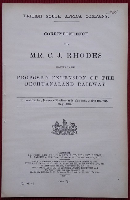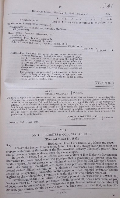 Mr. C. J. Rhodes to Colonial Office (March 27, 1899) - Submits further proposals