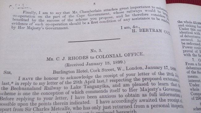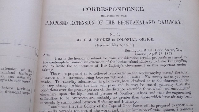 Mr. C. J. Rhodes to Colonial Office (April 28, 1898) - Submits proposals for the extension of the existing line of the Bachuanaland Railway Company to the Lake Tanganyika, and asks for the co-operation of Her Majesty's Government.