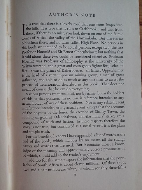 Signed by Alan Paton on the title page. 269pp.