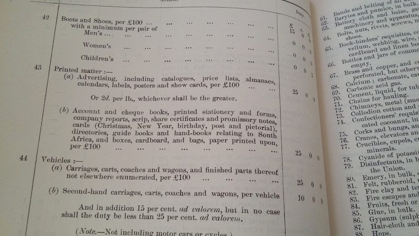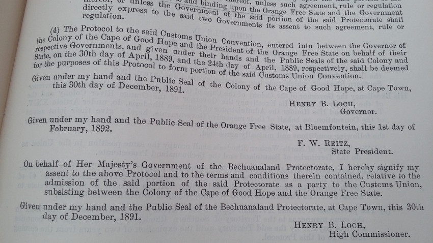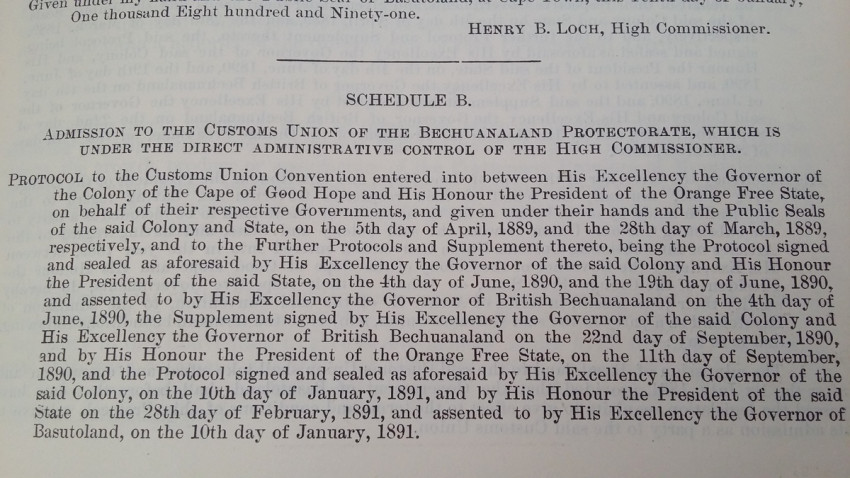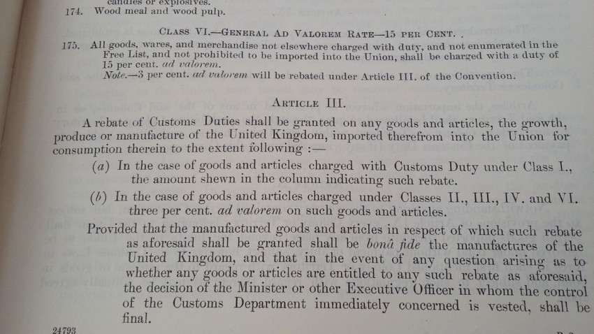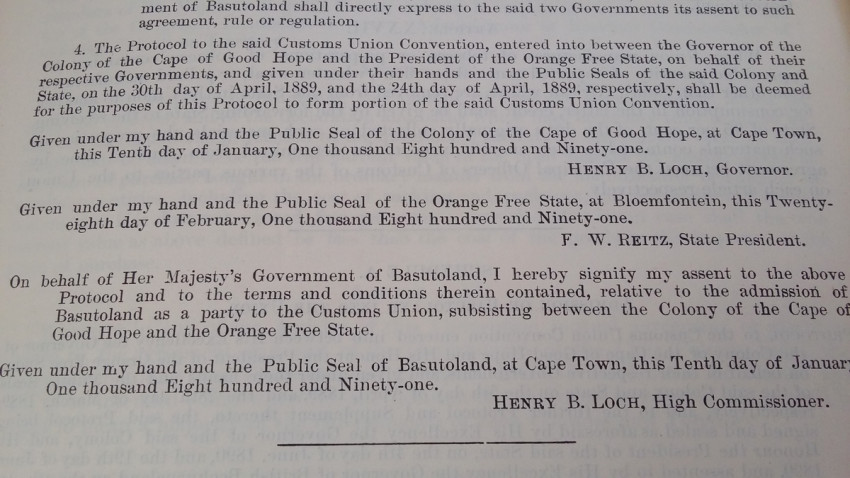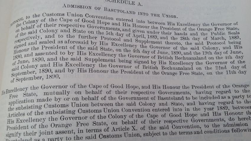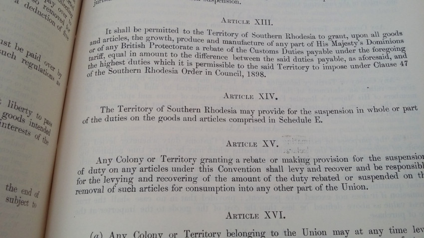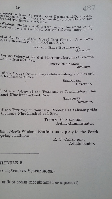 "CUSTOMS UNION CONVENTION provisionally agreed to by the REPRESENTATIVES of the SOUTH AFRICAN COLONIES at a CONFERENCE held at PEITERMARITZBURG in March, 1906."; British Parliamentary Paper [Cd.2977.]; Paper wrappers; Collation complete - 19 pages; Neat number marking to the title page, otherwise a clean copy.
