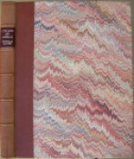 Housed in a brown cloth covered slip case with hand marbled paper and leather trim to match the brown leather spine with a red title label and marbled paper covered boards. The slip case differs from the one that was issued as it has a pictorial in-set on the upper side.