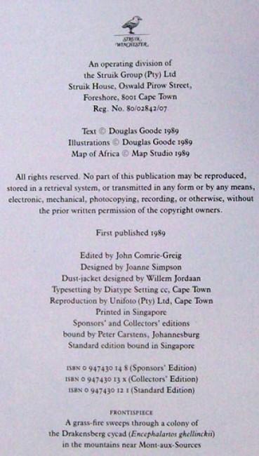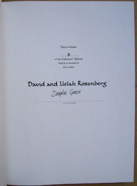 Copy number 3 of the Collectors' Edition which is limited to 100 copies signed by the author. (The original purchaser of this book was Dave Rosenberg, a well known Joahannesburg collector, now deceased.)