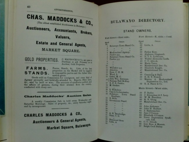 Rhodesia's first ever directory, reprinted in facsimile with additional introduction and early photographs of Bulawayo; 220pp.