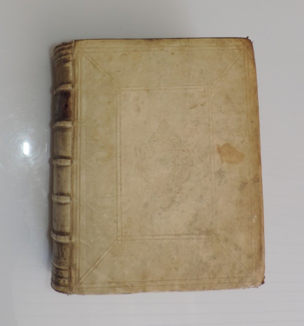 Commentarius Antonii Matthaei IC. In Illustri Academia Ultra-jectina Antecessoris. Matthaei was a professor of law and a colleague of Voet. Considering its age, this is a well preserved original vellum bound volume with five raised bands. . A very interesting pattern blind stamped on cover; with border. Previous owner’s name penned on the front inside page. Binding is firm and contents clear.