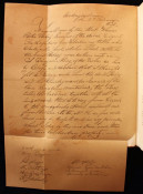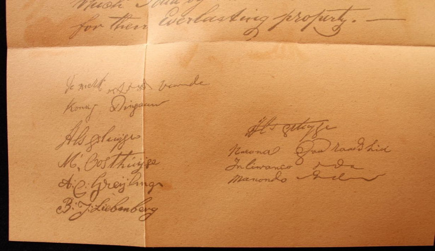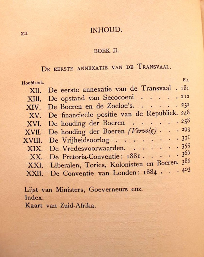 Includes a fold-out facsimile of the original contract between Voortrekker leader Piet Retief and Zulu king Dingaan. Retief negotiated, on behalf of the Voortrekkers, for land in Natal. The king gave his permission and even signed the treaty presented to him by Retief. However, shortly afterwards, when Dingaan proclaimed they were now friends in perpetuity, he had the whole delegation murdered.