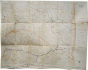 502 x 632 mm, roads printed in red, railways in black, rivers in blue, individual farms are named, mounted on linen and not folded.