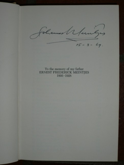 A very good and clean copy of this definitive, and scarce, biography of the legendary Boer soldier, signed by Meintjes on the dedication page \'Johannes Meintjes 15-3-69\'. End-papers very good, text and all illustrations and photographs very good without blemishes (except for one small smudge in the margin of p.10); page edges faded, top corners bumped, moderately rubbed cloth boards.
