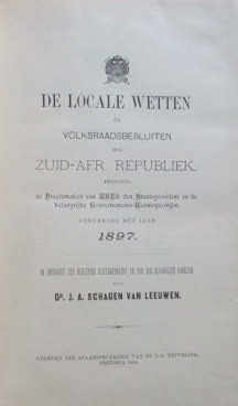 De Locale Wetten der Z-A. Republiek 1897- Wet No 1. 1897- Wet No 16. 1897 with 364 pages detailed text, tables and letters,