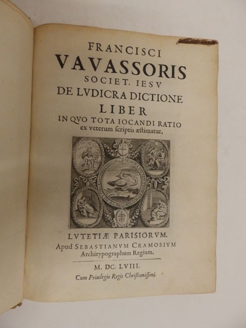 Small 4to. (242 x 180mm), pp. [viii], 462, [ii]. Engraved device to title-page, decorative head- and tail-pieces. Very lightly toned, a little sporadic foxing. Slightly later blind-tooled vellum, red morocco gilt spine label, edges sprinkled red and blue. A little grubby, upper joint split but cords and endpaper holding firm, top edge dusty.
