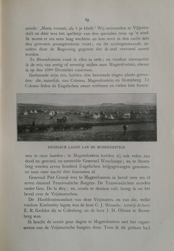 Cream cloth-boards, with design and lettering to the upper panel and spine embossed in brown and black (see first image), plain endpapers, sepia painting and facsimile signature of De Wet as frontispiece, 512 pp of prelims and text, with many full-page and smaller illustrations in and paginated with the text