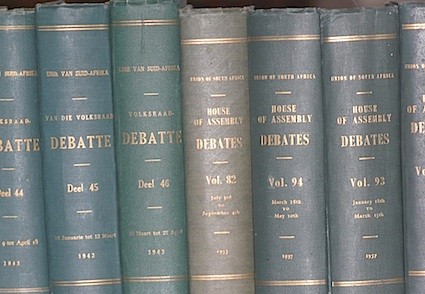 A total of 73 editions of Hansard and Statutes of The Union of South Africa/Republic of South Africa. Union of South Africa: Debates of Parliament (Hansard).