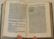 Very beautiful figurated title page and beautiful decorated initial letters. Single numbering.Ancient signature in internal front plate dated 1869.In good condition and complete.Half cloth cover of XIX century in good general condition with wearings and missing parts in the edges and spine. Piece of paper with handwritten notes in the front plate (see the photo). Binding in good condition. Inside pages are in good condition with foxing. In 16. Dim. 16x11 cm. Pp. 120+(1).