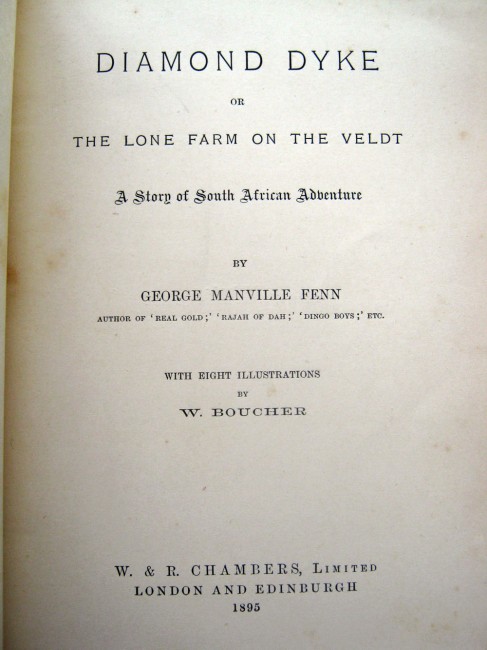 335p. With eight illustrations by W.Boucher. Presentation inscription on rear of ffep dated 1897. Decorative cloth boards, gilt lettering. Cloth is rubbed in places and binding is a bit shaky in places. A novel set on the veldt.