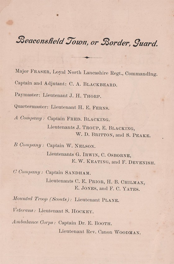 It is likely that the author was a member of the Beaconsfield Town, or Border Guard. A list of the officers of the Guard appears on the verso of the front cover.