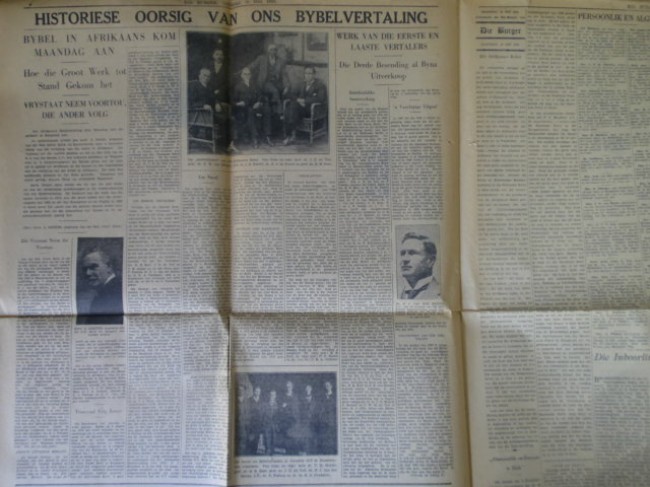 The long illustrated feature on the translation of the Bible into Afrikaans was an advance celebration of the publication of the first Afrikaans Bible on 5 June 1933.