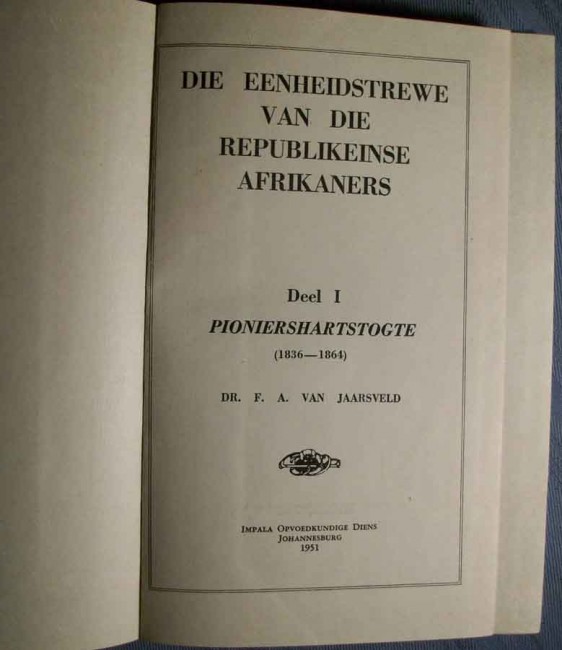 Die Eenheidstrewe van die Republikeinse Afrikanders. Deel 1. Pioniershartstogte (1836-1864). Hardcover with Dustcover.