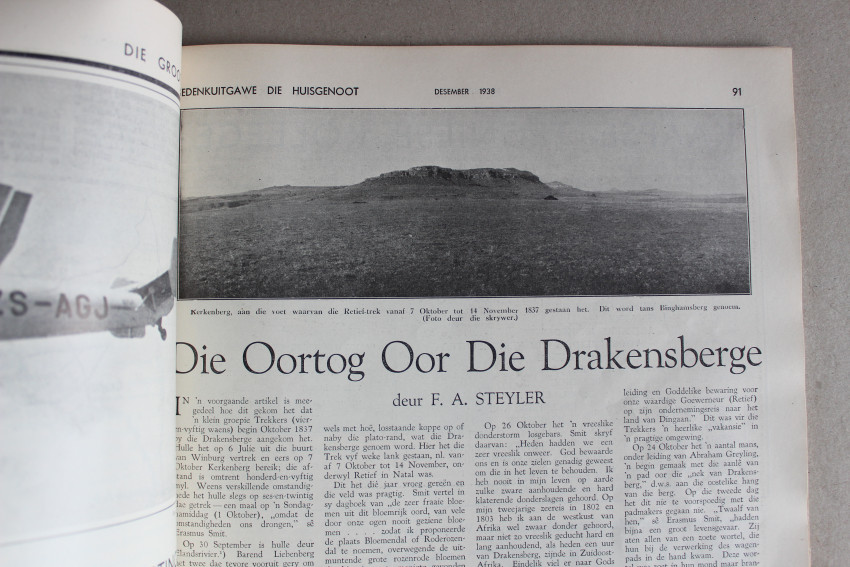 A centennial publication celebrating the Great Trek in 1838. This copy is in good condition. The many articles by various authors are most informative on a host of aspects relating to the Great Trek. The reason given for the murder of Piet Retief by Dingaan is particularly interesting. 192 pages.