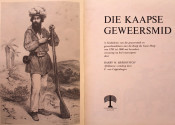 'Die Kaapse Geweersmid handel oor 'n ander aspek van ons geskiedenis, naamlik die baanbrekerswerk wat die vroeë geweersmids en -handelaars in ons land verrig het. Die kleurvolle en veelbewoë lewens van sommige van hierdie persone word op boeiende wyse geskets terwyl besondere aandag ook gewy word aan die vuurwapens wat deur hulle gemonteer of van die hand gesit is.