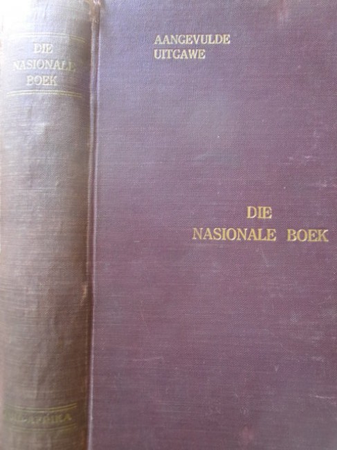Mainly in Afrikaans with some English, this encyclopaedic volume - some 750 quarto double-column pages printed on art paper - details the anatomy and rise of the National Party, and (translated) "what it had then achieved, with important articles and biographies of its founders, leaders and supporters throughout the Union".
