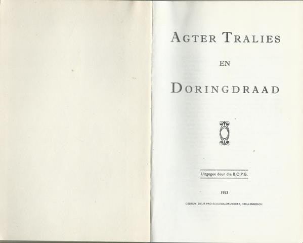 AGTER TRALIES EN DORINGDRAAD: xvii, 423 pages: illustrations, portraits, tables. Cloth, dustwrapper with creases and small chip to lower edge of spine.