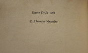 A self-published work. This edition was limited to 1000 copies. Johannes Meintjes was both a prolific author and renowned SA artist.