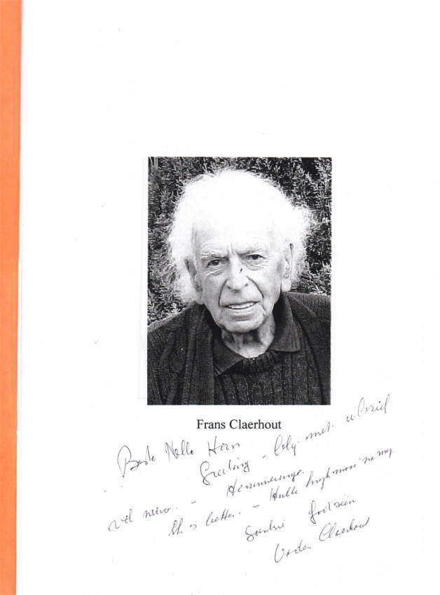 22 pages, portrait of Claerhout on the front free end paper with inscription, several black and white illustrations, 8 full page charcoal sketches, yellow wrappers – paperback, a very good copy.