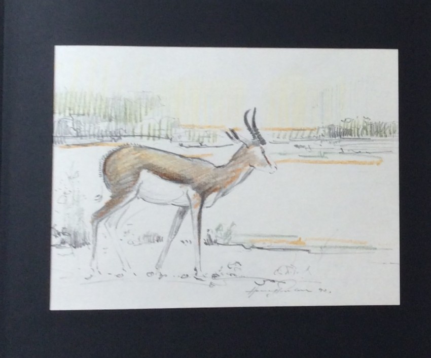 This is copy 1 of the de luxe limited edition of 15 copies signed by the author and including an original hand-coloured sketch of a springbok by Heinz A Pulon.