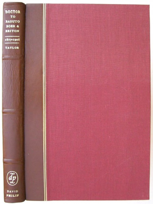 Original brown leather binding with gilt titling on the spine and red cloth covered boards. Grey coloured end papers. 18 prelims, 213 pages, 16 black and white illustrations.