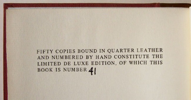 Copy number 41 of the de luxe edition which was limited to 50 copies bound in quarter leather.