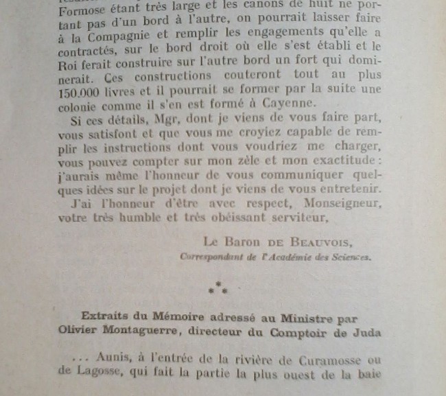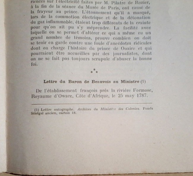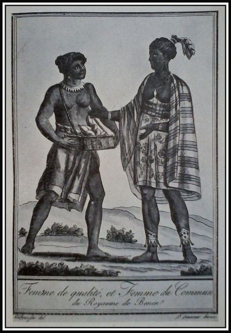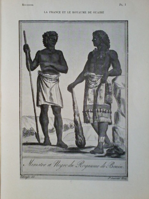 Excerpt from the newsletter of the Committee for Historical Studies and Scientists of French West Africa. With two beautiful engravings of domestic people - the first shows the Minister and local inhabitant of the Kingdom of Benin, the second shows Noblewoman and Common Woman of the Kingdom of Benin. With letter from the Baron de Beauvois to the Minister of the French establishment near the river Formosa (River of Benin), in the Kingdom of Ouaire, on 25 May 1787.